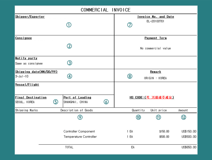 HOME > 부가서비스 > INVOICE 작성